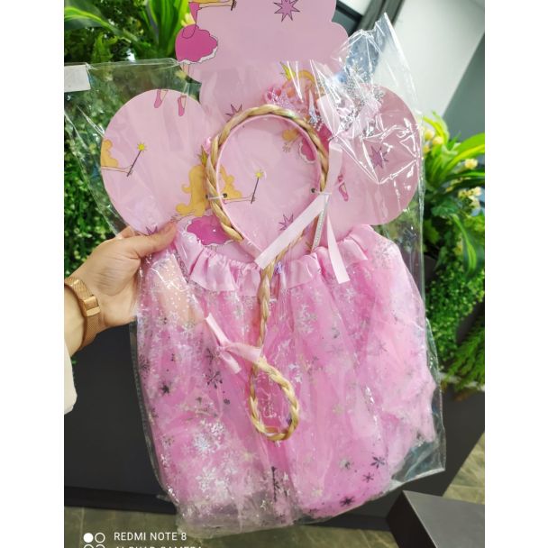 فستان تنكري بناتي مع تنورة اميرة دزني مع جدلة شعر 88/5 - زهري