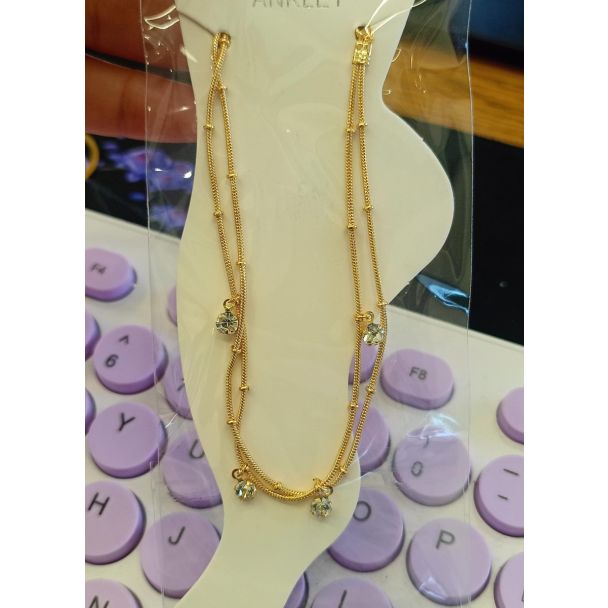 خلخال - رفيع مع اربع خرزات دهبي 9/2 (set - 15)