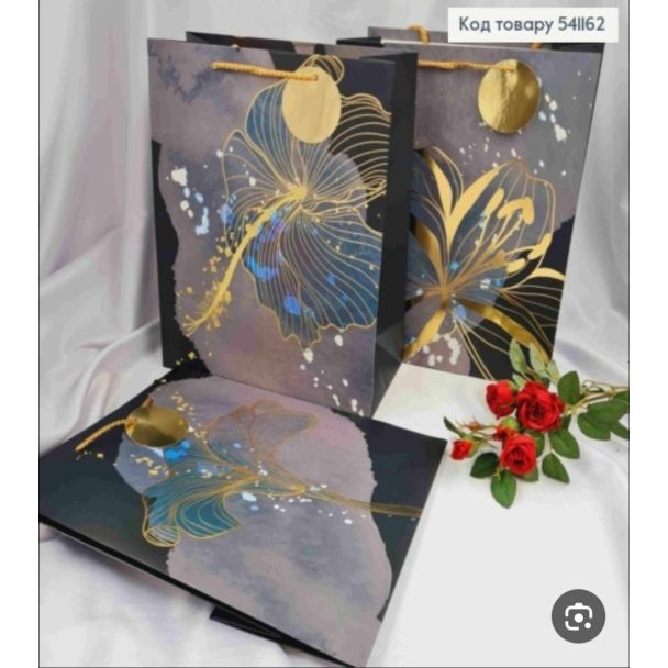 اكياس هدايا صغير 91/3 اسود وذهبي وردة