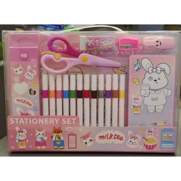 طقم قرطاسية مع الوان كبير(ارنوب/لون زهري) 40/2