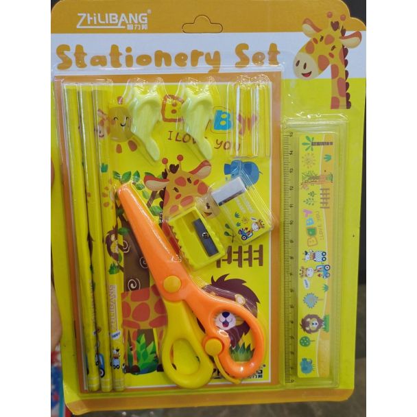 طقم قرطاسية مع مقص 40/11- زرافة/اصفر