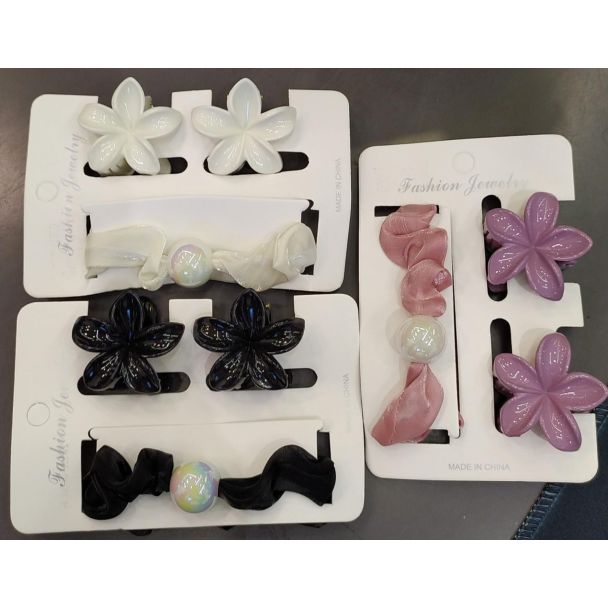 18/17 كرت ملاقط وردة وربطة شعر مع خرزة لولو