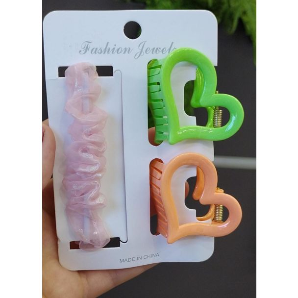 18/9 كرت ملاقط قلب وربطة شعر