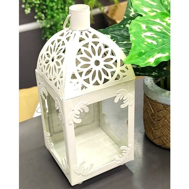 فانوس معدن 4/13 نقش ورود باللون البيج