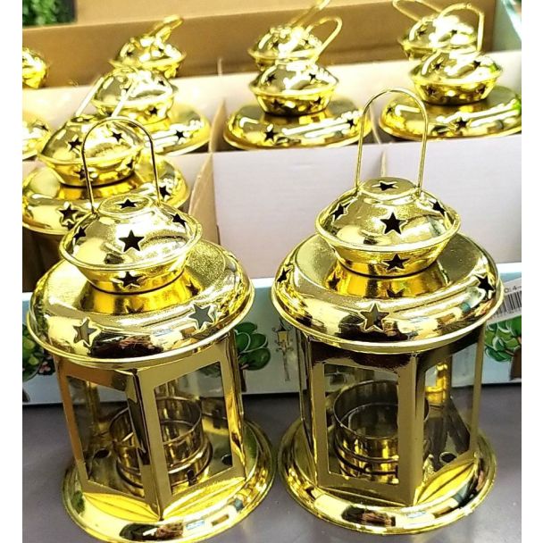 فانوس معدن 4/9 ذهبي مزخرب بالنجوم