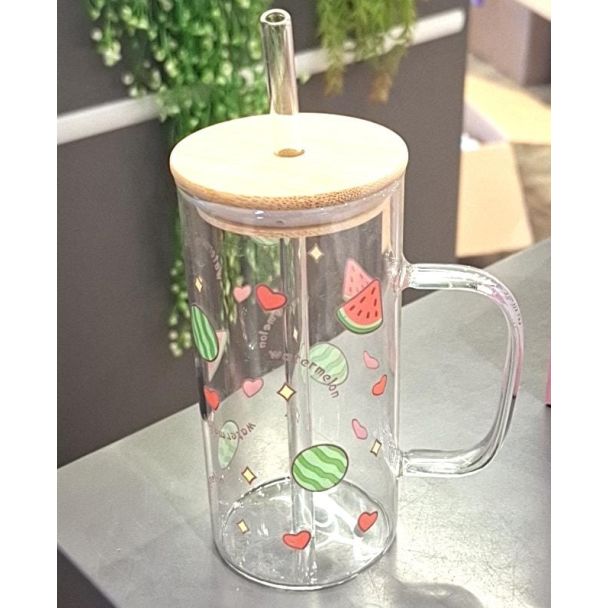 مج زجاج غطاء ومصاصة رسومات 25/14