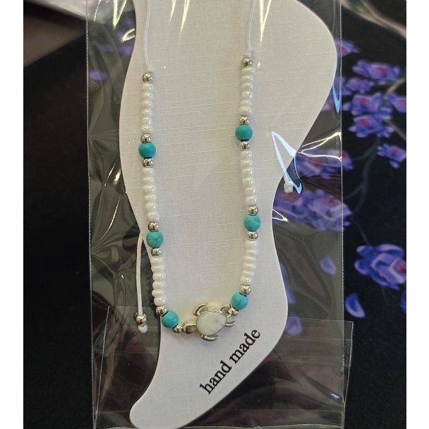 خلخال احجار ازرق وابيض 4/7 (SET - 07)