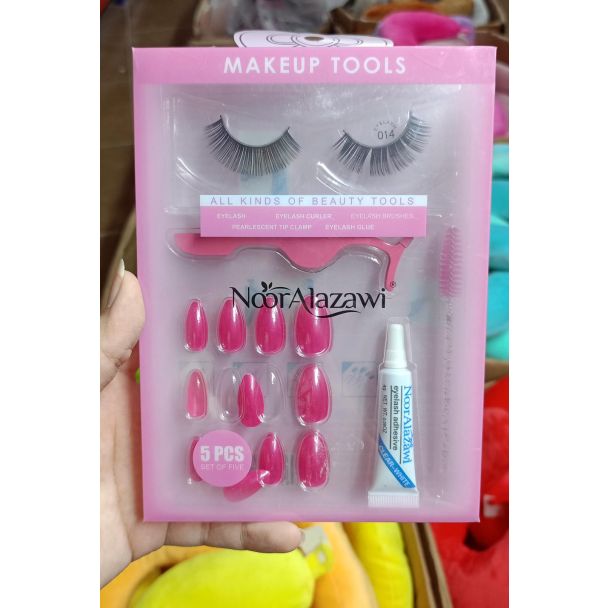 اظافر ملونة مع رموش -Hot Pink